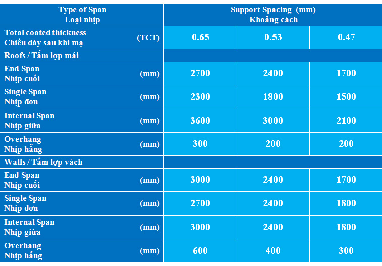 Cường độ cao, khả năng vượt nhịp, nhẹ và độ cứng của LYSAGHT KLIP-LOK® cho phép thiết kế khoảng cách xà gồ lớn với mức an toàn cao, tiết kiệm chi phí xà gồ.