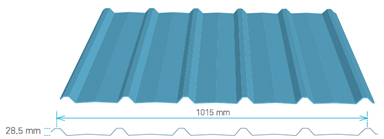 Tôn BlueScope LySaght Trimdek Opt Là tấm lợp có gân tăng cứng dọc theo sóng thung lũng, với chiều dài được cắt theo yêu cầu nên chỉ cần sử dụng một tấm lợp từ đỉnh mái xuống máng xối hoặc chạy dọc toàn bộ chiều cao vách mà không cần nối tấm lợp.