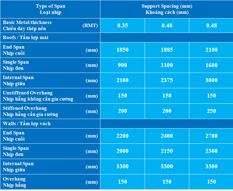 VẬT LIỆU CHẤT LƯỢNG CAO – thép mạ hợp kim nhôm kẽm ZINCALUME® và thép clean COLORBOND® G550, AZ150 với tuổi thọ trung bình cao gấp 4 lần tấm lợp mạ kẽm thông thường (AZ150 và Z275).